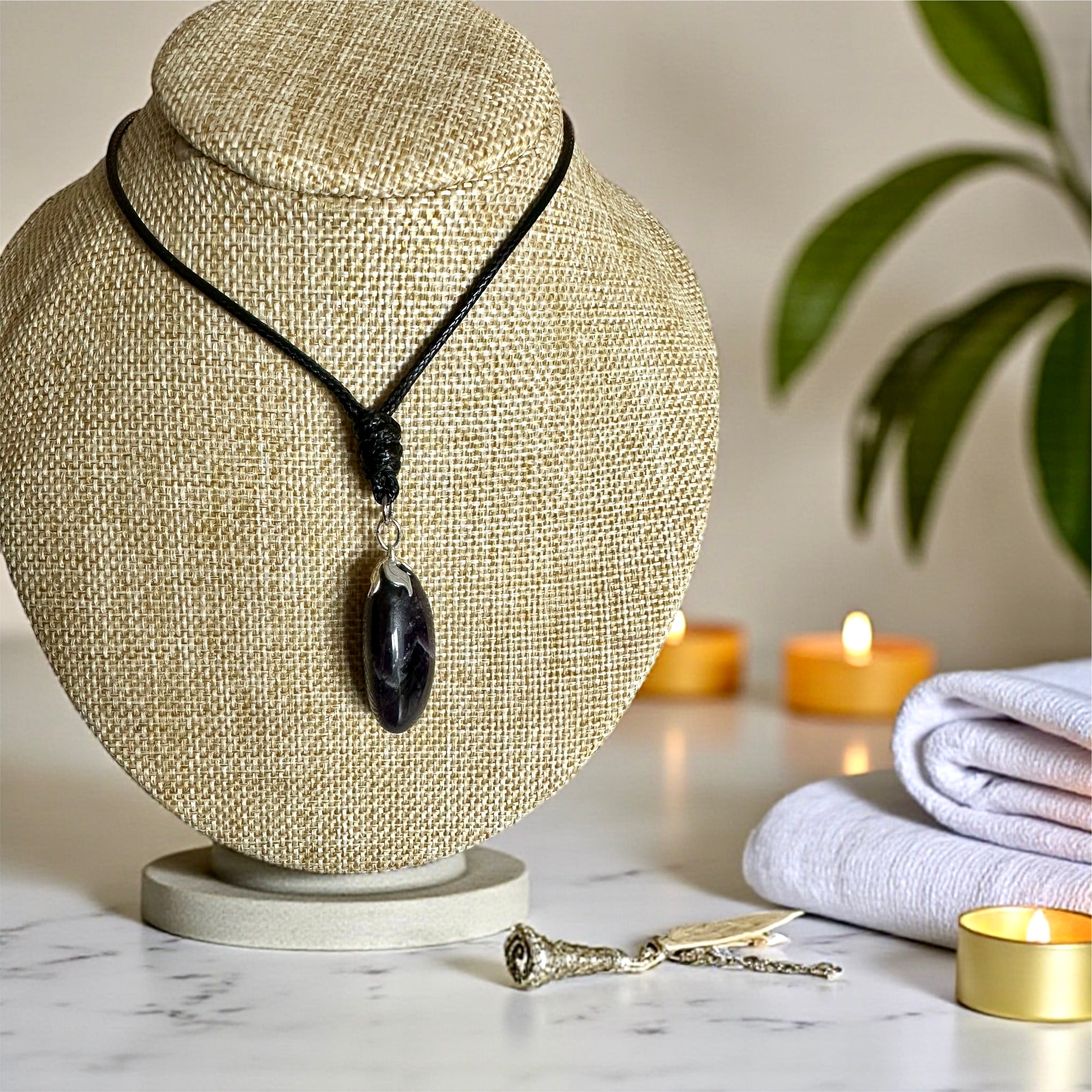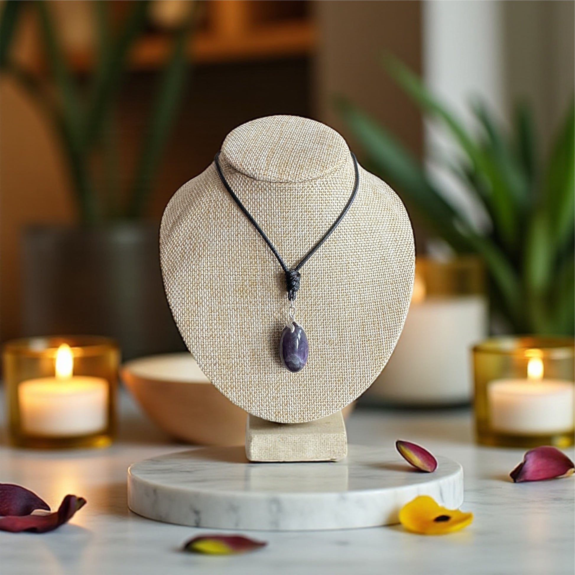 Le pendentif en Améthyste Rubanée est une invitation à ralentir, à respirer et à retrouver l’harmonie. Ses délicates stries violettes et blanches racontent une histoire de transformation, de douceur et de profondeur spirituelle. Montée sur un cordon sobre, cette pierre naturelle devient un bijou à la fois élégant et porteur de sens, idéal pour accompagner les femmes en quête de paix et de clarté.