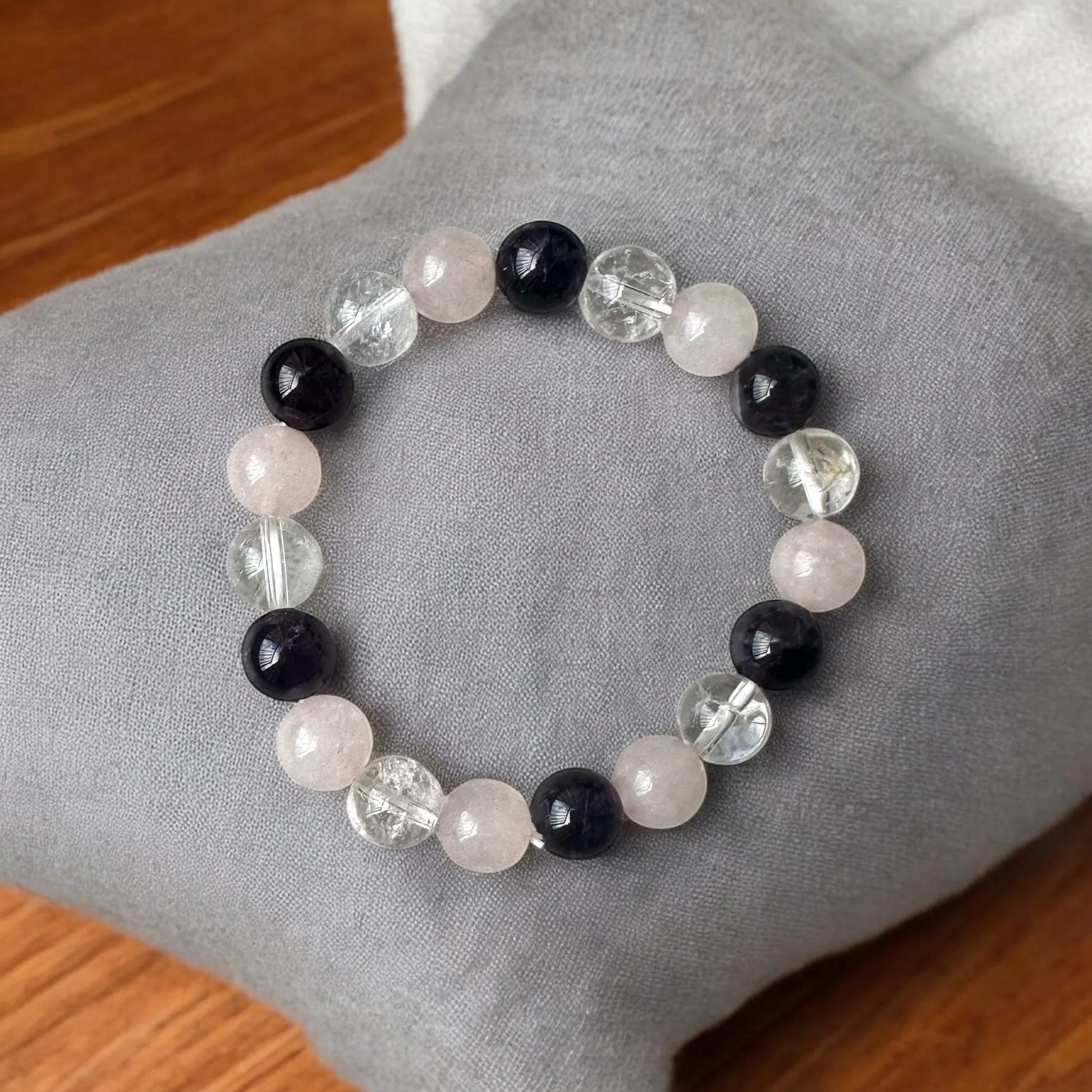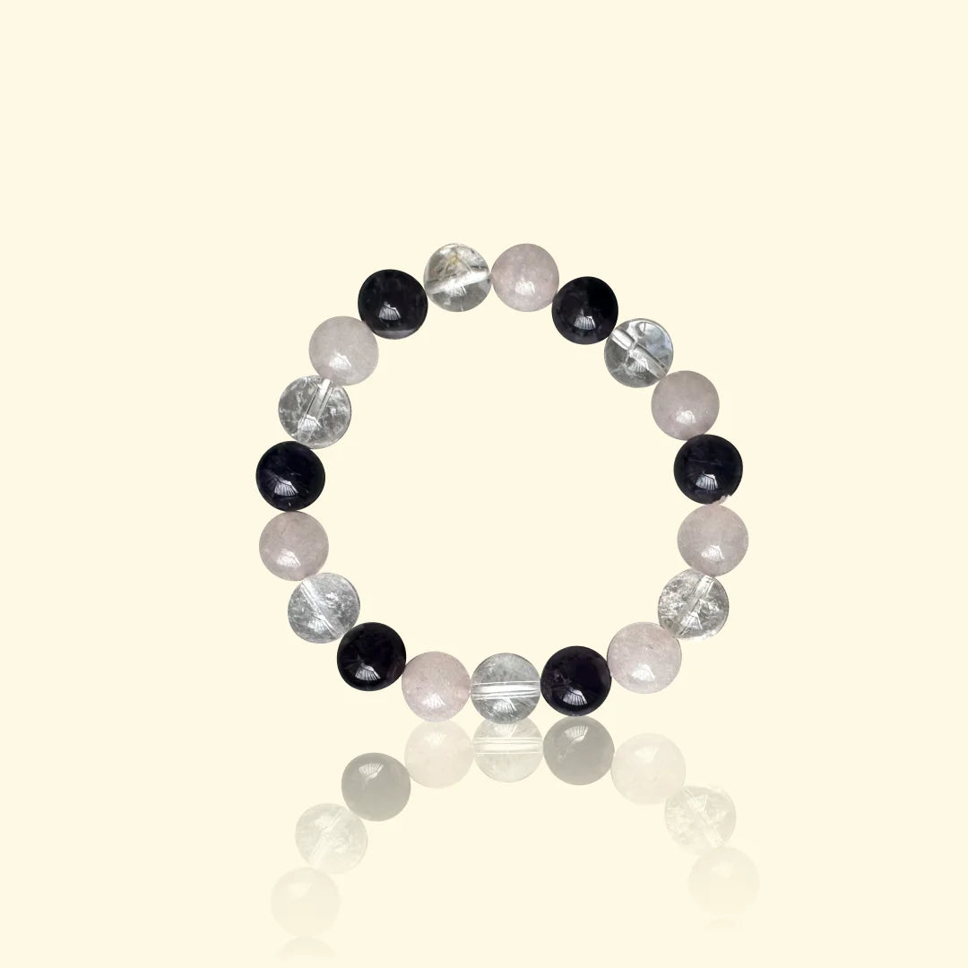 Le bracelet Obsidienne, Quartz Rose & Cristal de Roche