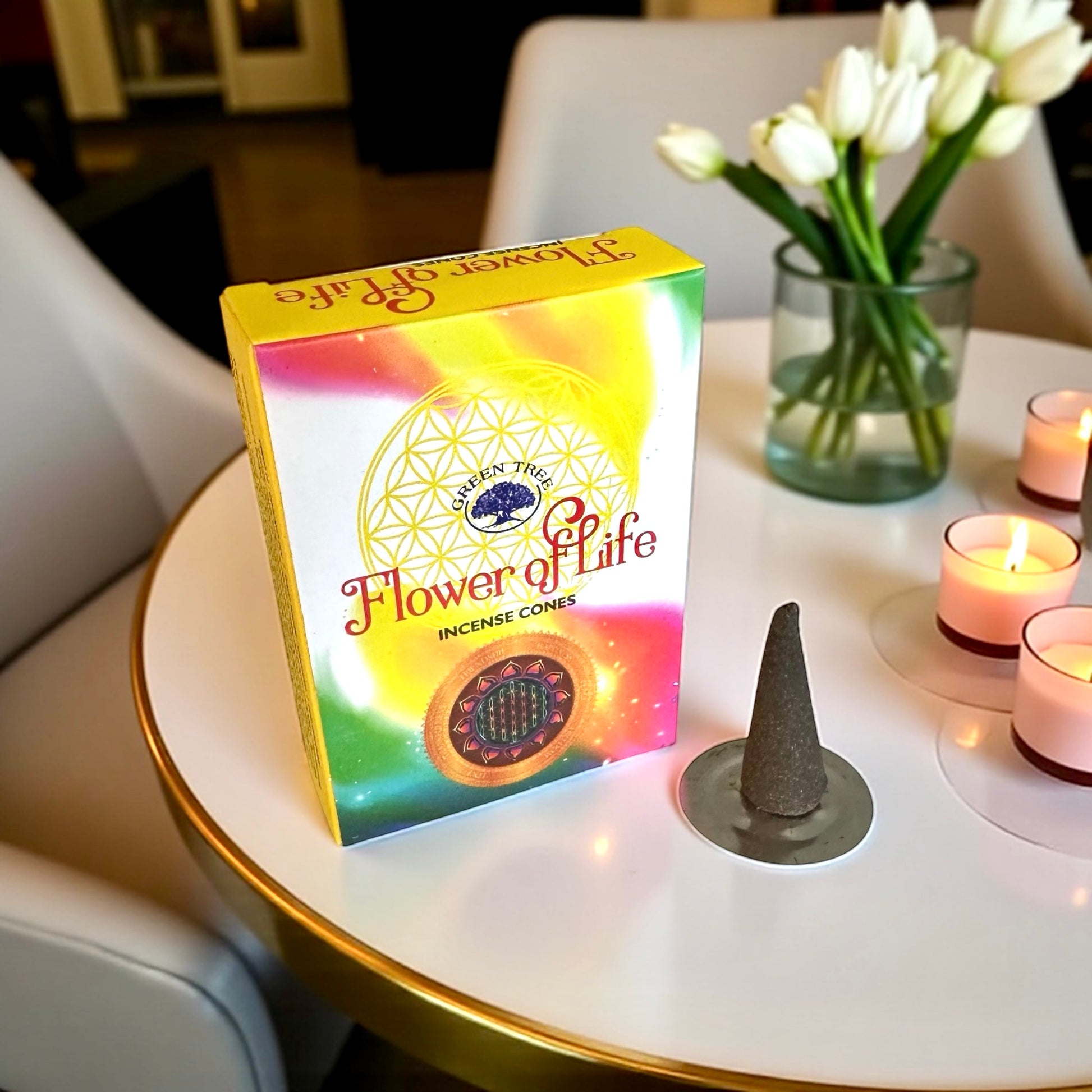 Apportez harmonie, lumière et paix dans votre espace avec les Encens en Cônes Green Tree – Fleur de Vie.