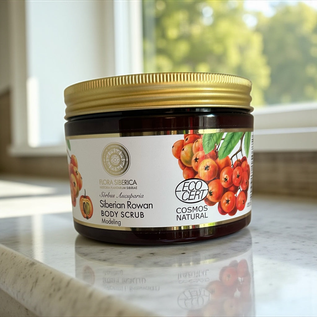 Offrez-vous un rituel de beauté nordique avec le Gommage Corps au Sorbier de Sibérie Flora Siberica.