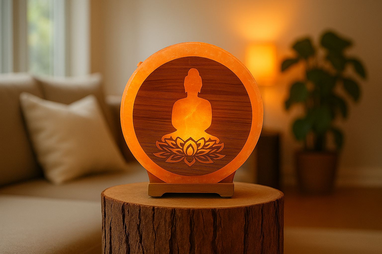 Transformez votre espace en refuge de paix avec la Lampe en Sel Himalaya – Bouddha & Fleur de Lotus 5 kg.