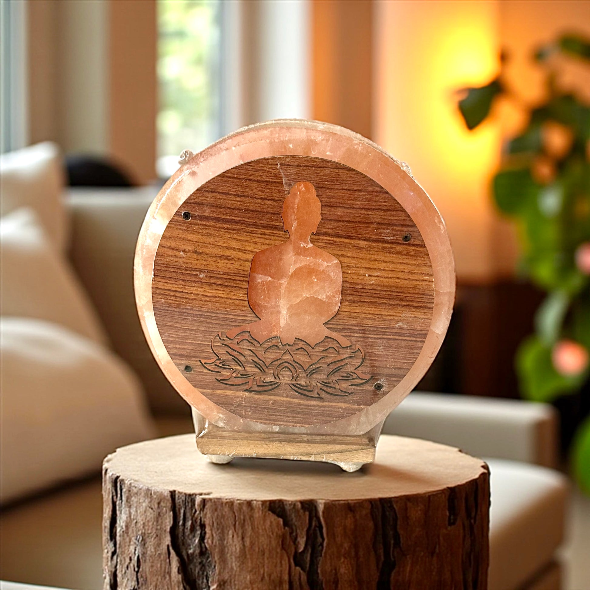 Lampe en sel de l'Himalaya Bouddha & Fleur de Lotus