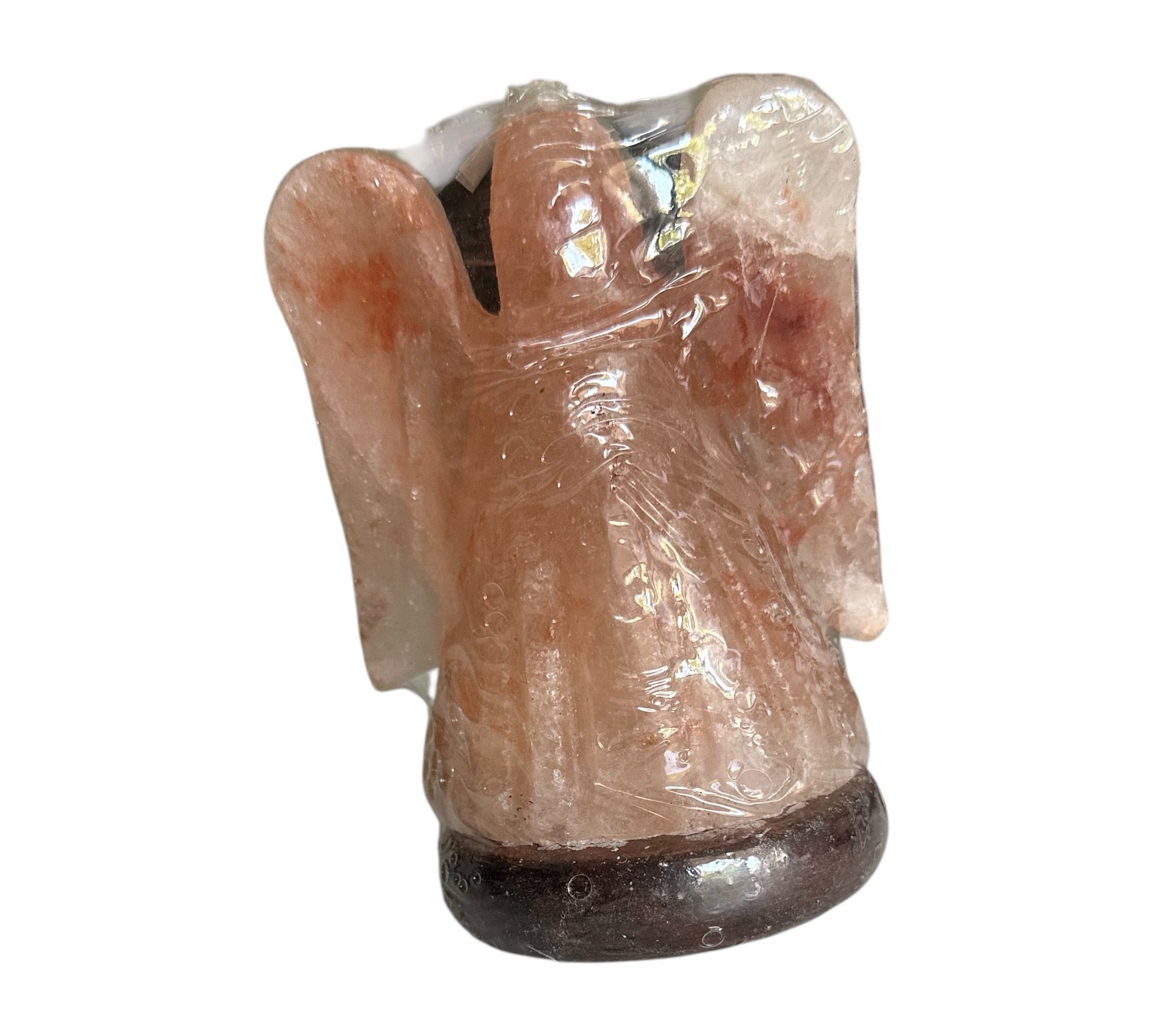 Apportez une lumière céleste et apaisante à votre espace avec la Lampe en Sel de l’Himalaya Ange. Sculptée à la main dans un cristal de sel rose naturel, elle diffuse une lueur douce et chaleureuse qui favorise la détente et la sérénité.