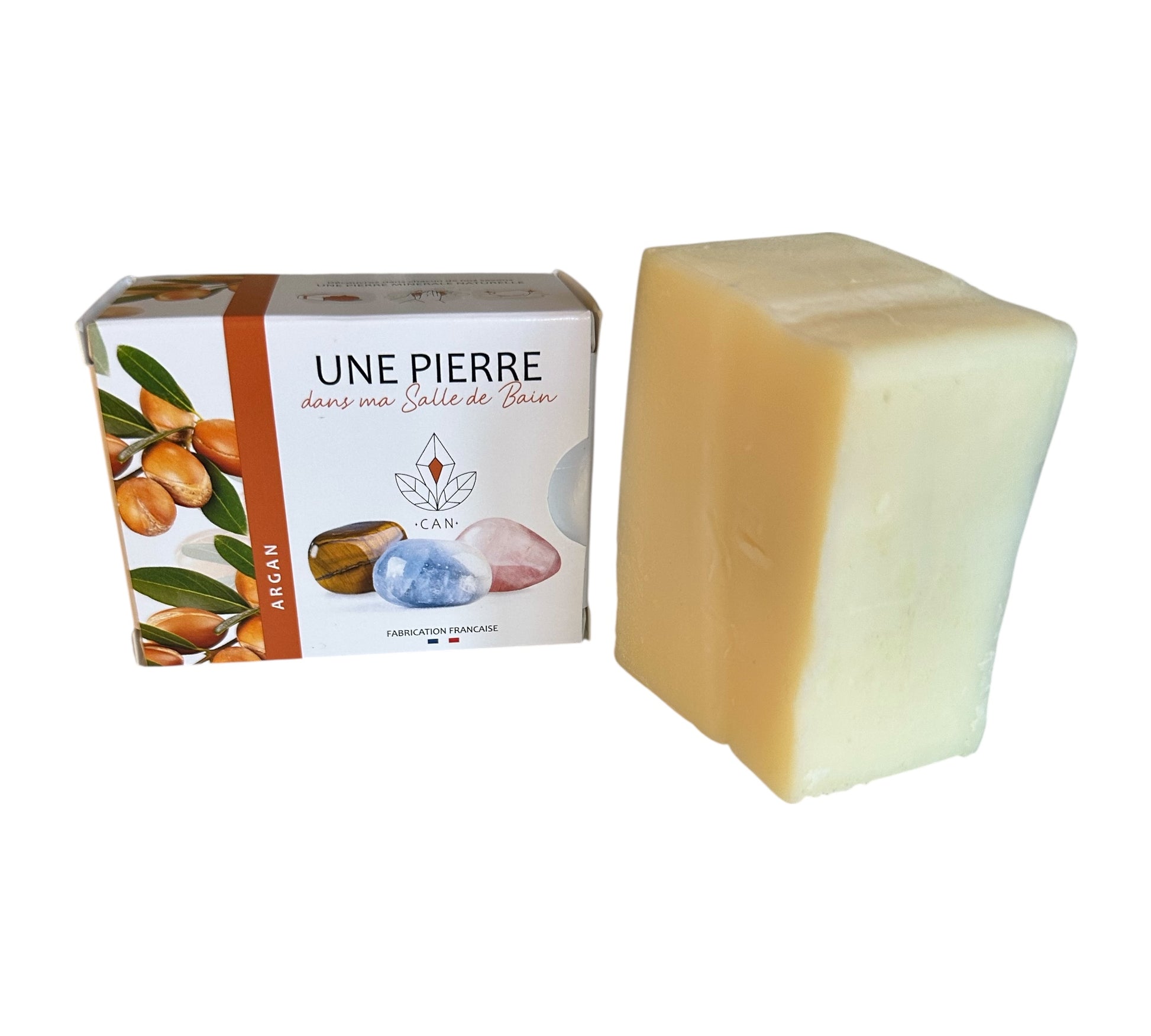 Faites de votre toilette un moment de soin et d’énergie positive avec le Savon à l’Argan et Pierre Roulée Intégrée.