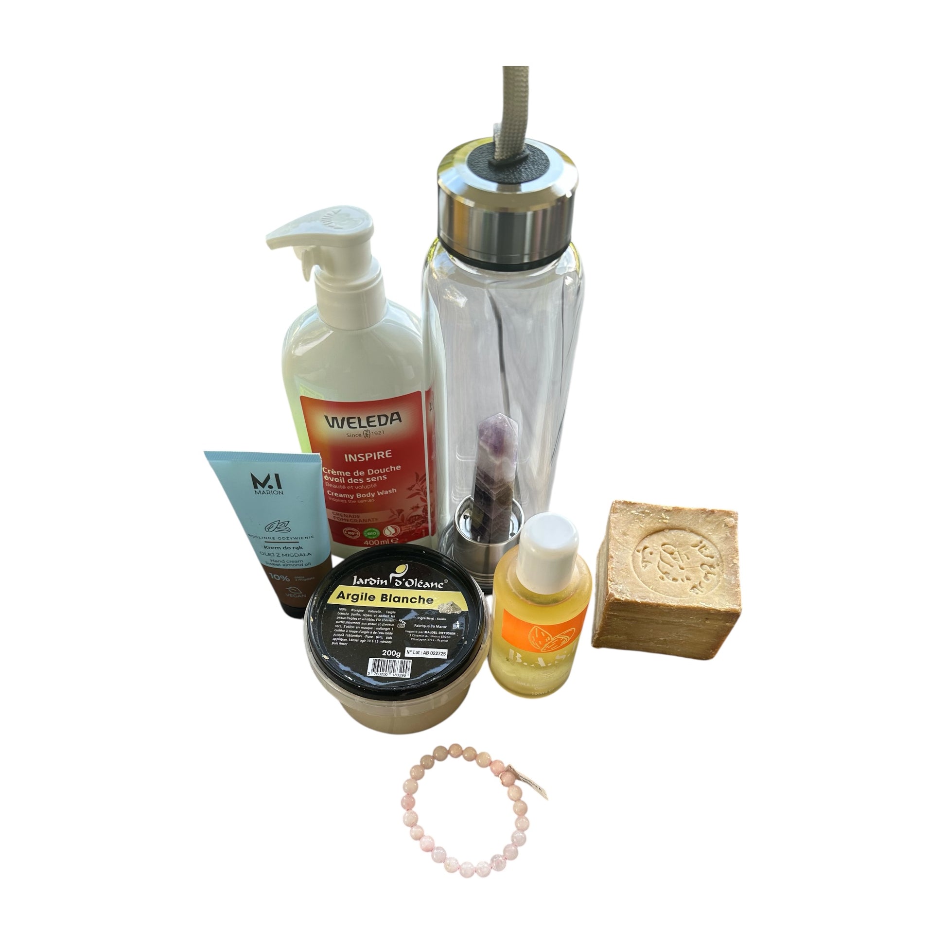 Le Coffret CÉLINE réunit des essentiels du quotidien - douche onctueuse, savon d’Alep, huile corporelle, crème mains à l’amande, argile blanche - et une touche bien-être avec la bouteille TADASANA et un bracelet en Manganocalcite. Prêt à offrir, pensé pour une routine féminine, douce et sensorielle.